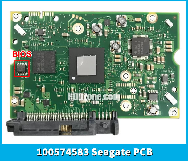 sur le carte PCB Seagate 100574583, la puce du BIOS est généralement située à proximité de la puce de contrôle principale. Il se présente sous la forme d’une petite puce carrée noire avec un boîtier à 8 broches. Notez qu’avec les progrès de la technologie des disques durs, certains disques durs peuvent avoir plusieurs puces BIOS (2 à 6), qui doivent toutes être remplacées lors du transfert du micrologiciel. Et certains PCB ont des puces BIOS intégrées à l’intérieur de la puce principale (la plus grande puce de la carte), généralement avec de nombreuses broches, et une certaine quantité de technologie est nécessaire pour les remplacer.
